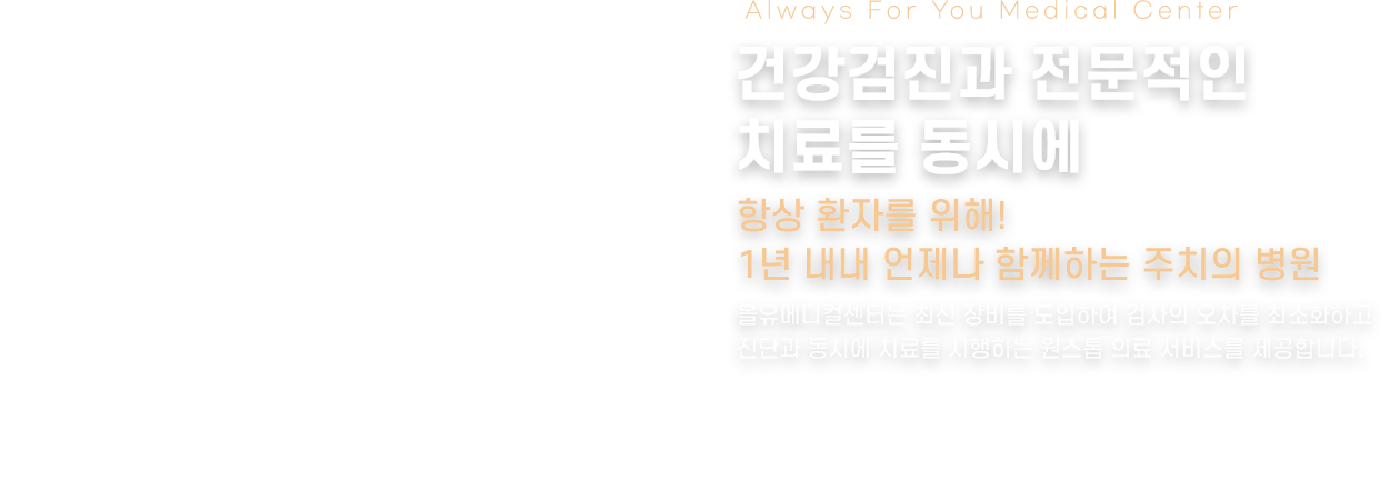 국가 6대암 검진을 비롯해 대학병원급 최고수준의 첨단장비와 의료기술